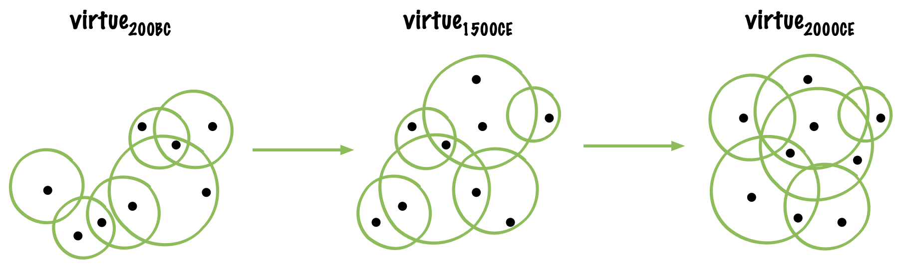 Such honesty gets more difficult because concepts evolve over time. What the Romans meant by “virtù” is different from what Machiavelli meant, which is different from our modern idea of “virtue.” They’re not separate ideas, but they’re also not the same idea.